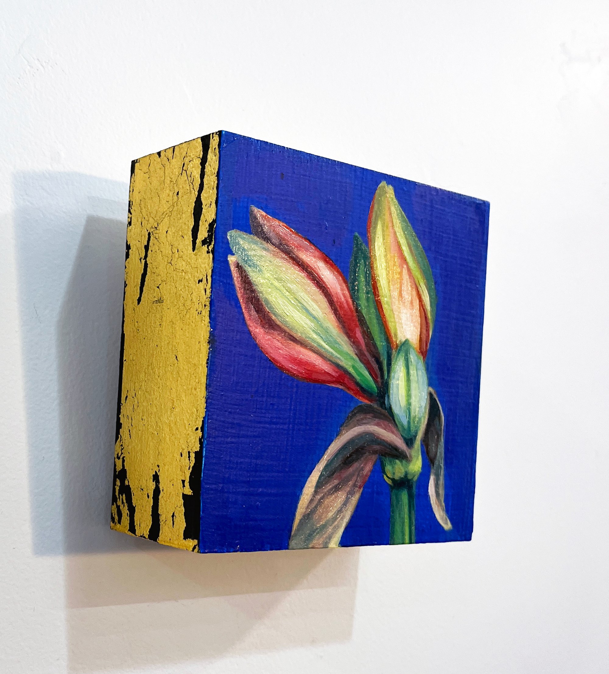 A beautiful oil painting of the 'Amaryllis' flower. True 24K gold gilded around the edges to give it a stunning but contempory look.