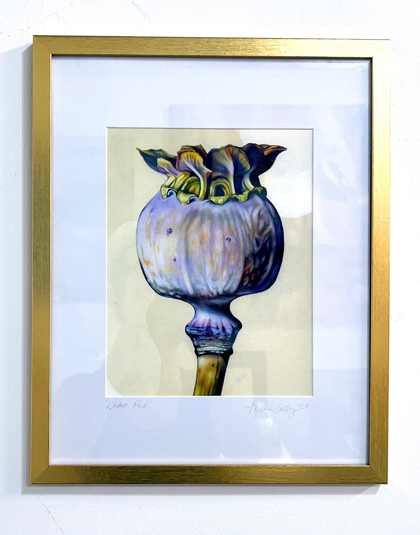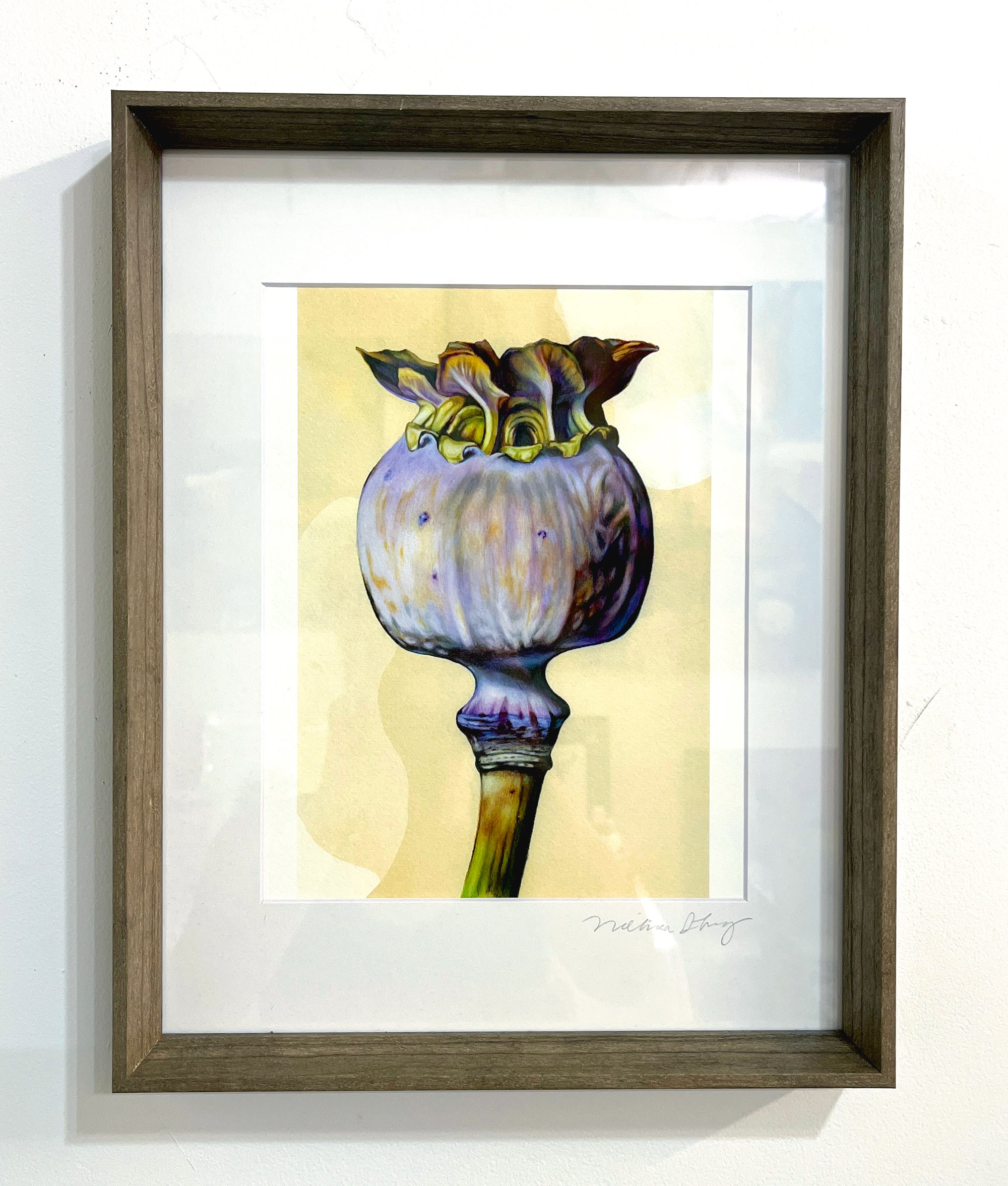 A serene Poppy Pod Art Print. Original done in color pencil on coffee dyed paper.